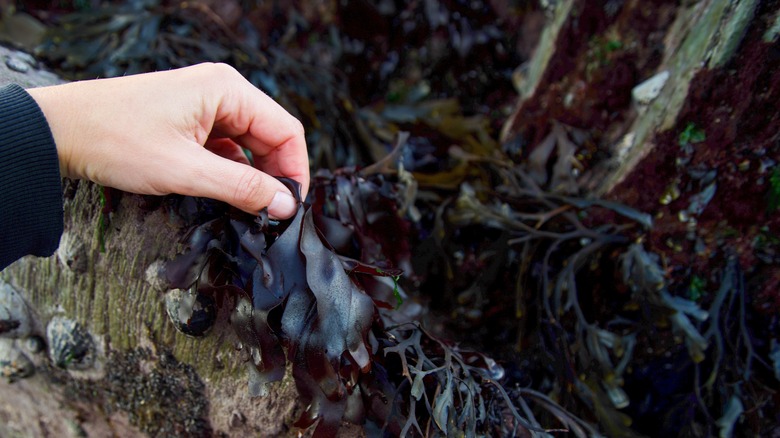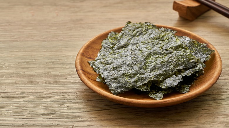 Out of all the under-sea veggies on our list, nori may be the most familiar if you're a sushi fan. As Food Network explains, when you clean, chop, and create a slurry from fresh seaweed, you're well on your way to making nori. Just take the slurry, spread it out thinly, dry it, and toast it, to create the seaweed wrap that's most commonly used in the United States for sushi.
