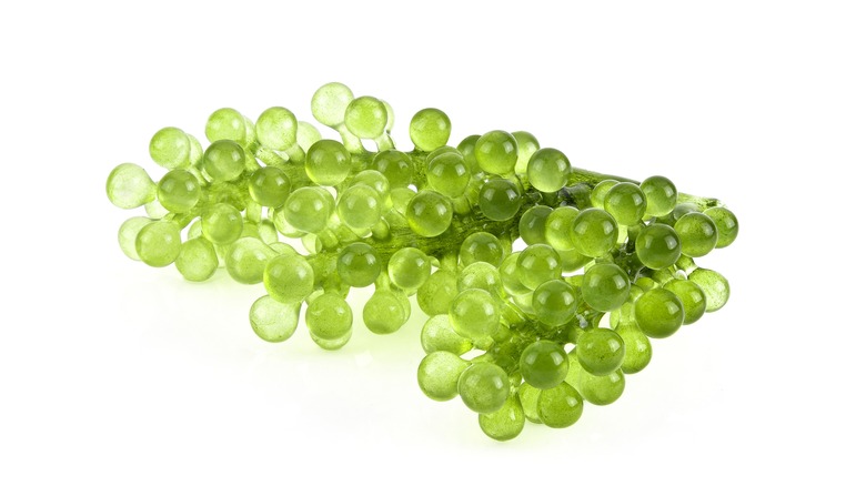 Sea grapes are exactly what they sound like. They grow in the sea and look like miniature bundles of green grapes. According to an article from Phys.org, while sea grapes may look like grapes, they actually taste more like caviar, hence their other moniker, "green caviar." Whatever you call them, these salty, small orbs are often cultivated in Asia, where they're eaten raw with salads, sushi, or in sauces. Other cultures have yet to jump on the sea grapes train, even though they're incredibly easy to grow and grow quickly, while also offering a large amount of antioxidants in every serving.