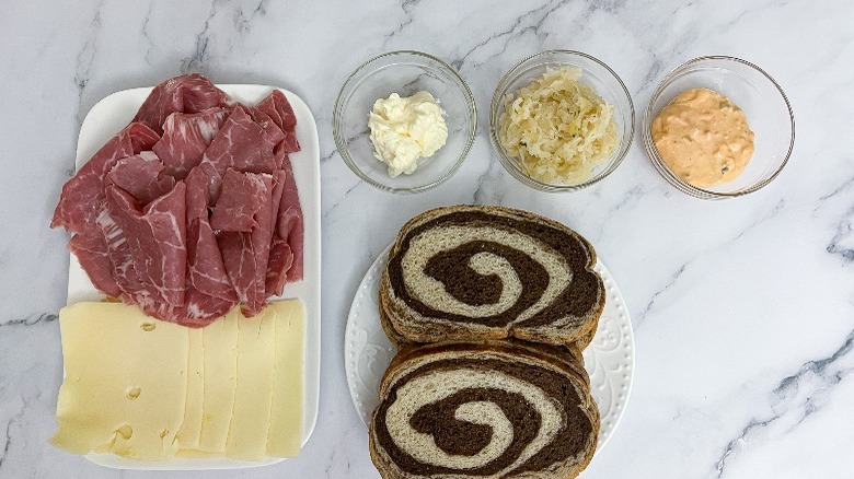 Gather the ingredients for classic Reuben sandwiches
