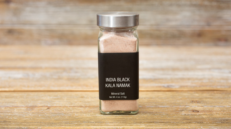 Kala namak is called "black salt," though that name might be marginally erroneous. According to Koyuncu Salt, kala namak can appear black, but can also have a violet hue. When ground up, the salt loses all sense of blackness and actually becomes pink. Even so, color isn't really the point here — it's all about the flavor.