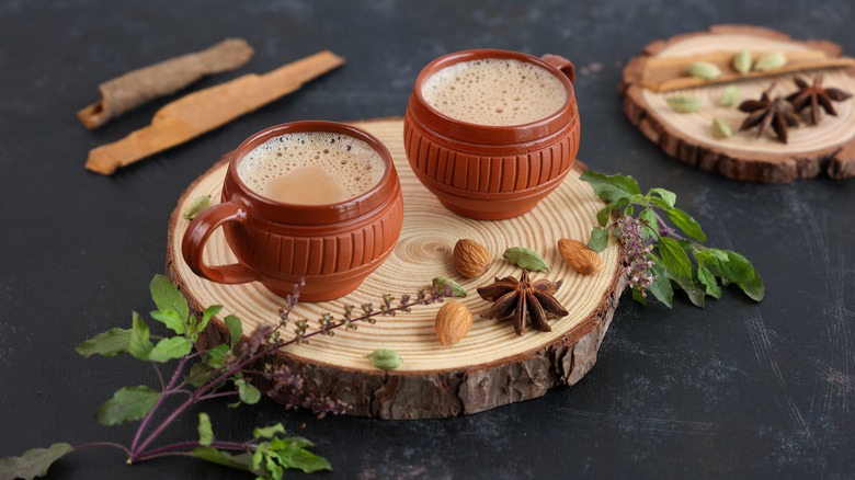 Move over pumpkin spice, Chai is here to elevate your fall drinks. According to Teatulia, chai has existed for far longer than pumpkin spice, with origins dating back more than 5,000 years. The word chai literally means "tea" but is used colloquially to describe a tea drink infused with warm spices, such as pepper, ginger, cinnamon, and cardamom. The original beverage actually didn't include any tea leaves at all, instead consisting of only spices that were thought to hold medicinal purposes.