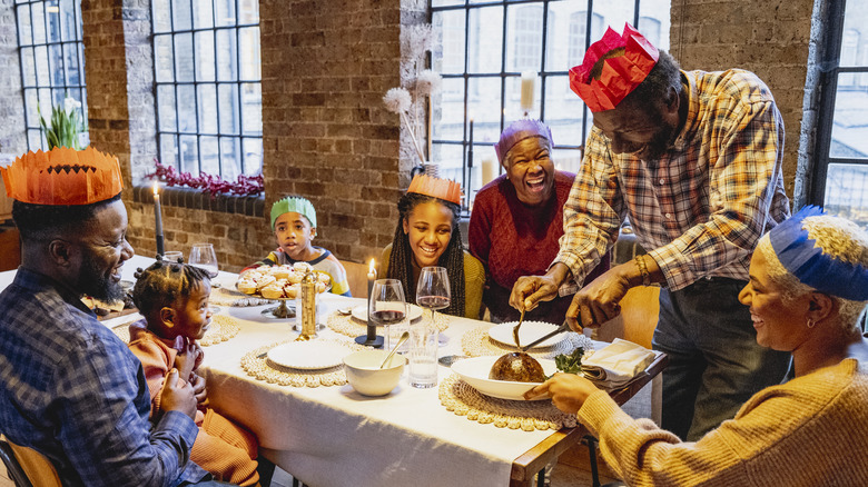 The Guardian reports that there are essentially two predecessors to Christmas pudding. The first is early mince pies, which had meat, fruit, and alcohol. The other is a dish with the onomatopoetically delightful name frumenty, which The Conversation says comes from the 14th century. Frumenty was more of a slurry or porridge full of cracked wheat, nuts, and berries. It was ladled out as an appetizer but had a consistency more akin to regular pudding.