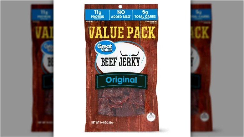 For one thing, this meat from Walmart has a legitimately great value (pun intended), costing $3.00 less than Jack Link's similarly sized 10-ounce package as of November 2022. Considering the immense toll inflation has taken on the average price of groceries in 2022, any savings to be found are a welcome bonus to consumers (via USDA). Beyond the dollars and cents, though, is the fact that customers seem to truly enjoy Great Value beef jerky. Reviews at Walmart overwhelmingly compliment the prodigiously processed meat, meaning if you're searching for an affordable and delectable beef jerky product, you won't go wrong purchasing it from Walmart.