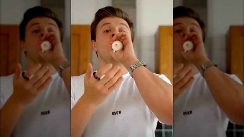 While all these aforementioned tricks have been proven to work, there's another method that's faster and less messy. Plus, you might even find it more enjoyable than the others. YouTuber Max Klymenko is one of many people who has attempted the hack and shared a video on social media. He describes the process as "peeling an egg without peeling an egg" (via Instagram).