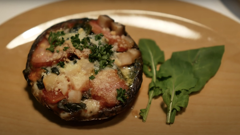 Mushroom fans will have no problem finding dishes that suit their taste at Super Nintendo World. Kinopio's Cafe seems to be well stocked with mushroom-inspired dishes, and the Portobello Mushroom Pizza Topped with Bacon and Vegetables is no exception. In fact, this is not your standard pizza topped with mushrooms — this time, the mushroom itself is the pizza, with the portobello mushroom serving as the base which is then topped with bacon and veggies (via Mario Wiki). This is a rare opportunity to eat plenty of veggies while visiting a theme park, a place that is typically known for deep-fried snacks and all things sugar.