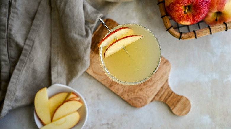 Over the years, the appletini, a cocktail that tastes like a boozy Jolly Rancher, has fallen out of favor in a day and age when the mixologist's mantra seems to be "everything's better with bitters." However you can always relive the nostalgia, and make your own at home. Recipe developer Christina Musgrave tells us that her apple martini is "an easy cocktail that comes together in a few minutes." She feels that the key ingredient is the apple juice and, channeling her Ina Garten, recommends using one of "good quality."