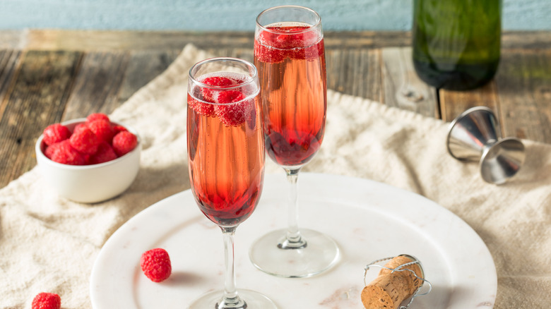 The result is a visually appealing and complexly flavored cocktail that can be prepared in a matter of seconds. The dryness of the Champagne plays a similar role as white wine in the original Kir, but the addition of bubbles makes for a real palate-pleaser. And if you're a fan of raspberries, consider giving the Kir Imperial a try. With this cocktail, you keep the bubbles but swap out the crème de cassis for a raspberry liqueur. Chambord manufactures one of the most famous raspberry liqueurs on the market, which consists of raspberries, blackberries, and black currants. With a base of Cognac, this liqueur is known for its complex flavors and fragrant aromas.