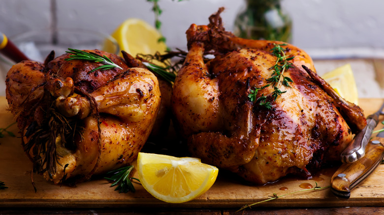 If you're working with a whole chicken for the first time, you can't find a much simpler recipe than Ina Garten's "Perfect Roast Chicken." Employing the tried-and-true combination of lemon, garlic, butter, and herbs (plus a generous amount of salt and pepper), Garten boasts on an episode of "The Barefoot Contessa" that the recipe is so easy she can make it in her sleep. What's more? The recipe alone features a host of tips that will serve you with other roast chicken recipes — be it one of Garten's or someone else's.