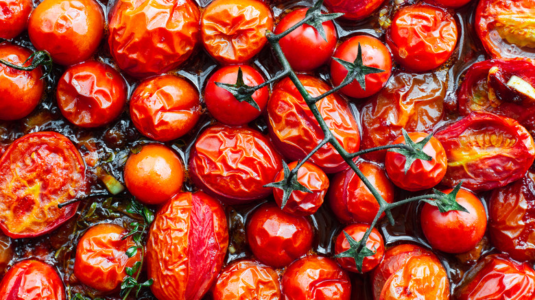According to Susan Olayinka of Mashed, you can roast easily cherry tomatoes in your air fryer, which caramelizes the sugars so they taste extra intense. The process takes less than 15 minutes and only five ingredients, and then your flavor-packed tomatoes are ready to be smeared on top of bread, added to a chunky tomato soup, or, of course, used in your spaghetti sauce. You can employ the same technique in a regular oven, simply roasting the small tomatoes whole in an olive oil-covered pan with a sprinkle of salt.