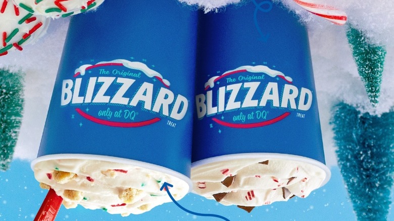 For the 2022 holiday season, Dairy Queen has once again introduced new Blizzards to its lineup. Both of the winter-themed Blizzards are crafted with fan-favorite holiday treats. And one, the Sugar Cookie Blizzard, is a brand-new creation, per People. Here's what we know about the festive new frozen treat.