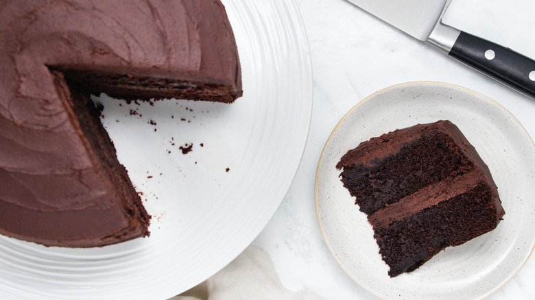 There's just something about a cake that brings a crowd together. Whether it be a birthday party, retirement party, bridal shower, or even a "just because" kind of event, it's always a good idea to bust out a cake. There are several different flavors and varieties of cakes to choose from, but there's no doubt that a chocolate cake one is the most decadent and the best for chocoholics. This recipe makes it easy to whip up a cake in the comfort of your home and it's always fun to showcase your baking skills to family and friends. We should also mention the recipe includes a rich, homemade frosting to go that pairs perfectly with the cake itself, and really, is there anything better?