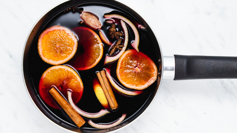 Mulled wine is a great way to enjoy a bottle of your favorite wine in a totally different way. As most of us know, people usually consume this flavor-filled adult beverage around the holidays, especially during the Thanksgiving and Christmas season. According to Vivino, mulled wine dates all the way back to the 2nd century. The Romans didn't drink wine for socialization, but they used it like we use tea these days — as a way to keep warm in the frigid temperatures. The Romans also believed that the combo of wine and spices could keep them healthy. But since it was so delicious, it has stuck around, and become a staple drink.