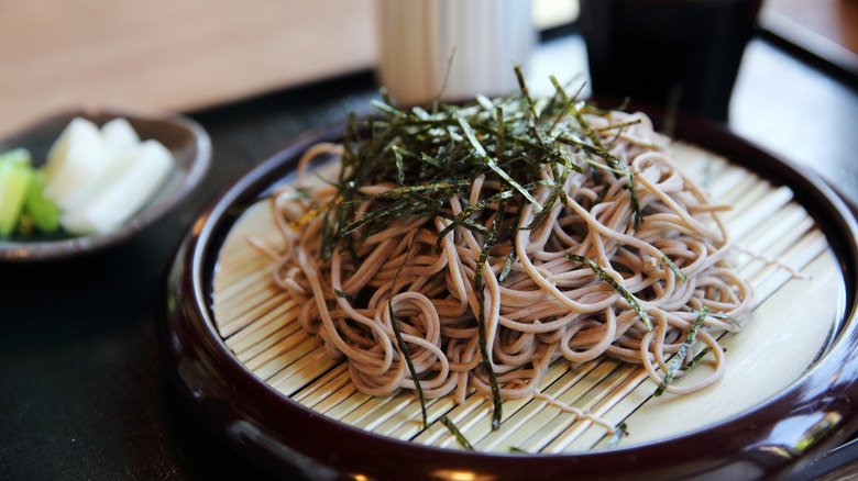 Soba is a type of noodle thoroughly enjoyed as a staple in Japan, and typically made using buckwheat flour. According to japan-guide.com, soba noodles are often enjoyed as comfort food, but are also eaten when someone is under the weather due to their health benefits. As per Healthline, soba noodles are packed with more protein than Italian-style whole-wheat spaghetti noodles and contain a plant compound known as rutin. Rutin harbors potent antioxidant properties, which can help with cholesterol levels; it also has other benefits, including strengthening and flexibility of the blood vessels (which may ultimately aid in conditions related to blood clots), as well as helping to reduce arthritis pain.