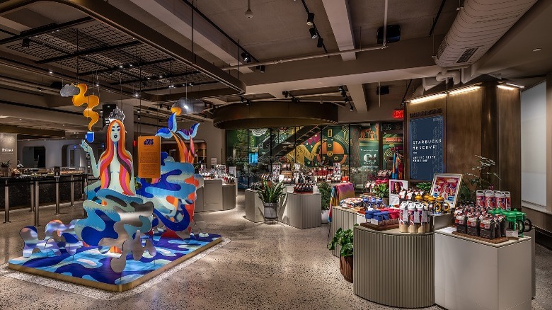 Each floor of the Empire State Building Starbucks Reserve was designed with a specific experience in mind. The first floor is the closest thing to a typical Starbucks experience you'll find in this location. Thrillist describes the space as "a high-end take on your typical neighborhood Starbucks cafe." It features a full cafe menu with to-go food, unique coffee drinks, and standard menu items. The first floor also features a shop with artist-inspired merchandise and a seasonal rotation of whole-bean coffees.