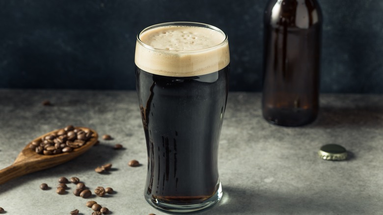 You might want to break out your bottle opener for this one. A dark, malty beer could be the unsung hero of your next chocolate cake. Because dark beers like porters and stouts are made from roast malt barley, they often result in notes of coffee, cocoa, caramel, and even dried fruit (per MasterClass). These flavors, as we know, lend themselves well to either complementing or enhancing something like rich chocolate.