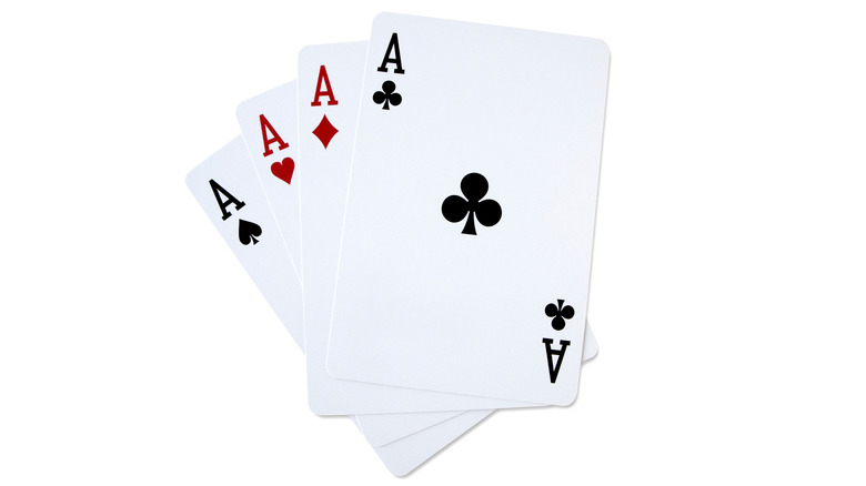 Topping our list is the boozy version of the classic card game, only with slightly different rules and the potential for a lot more fun. To play you need a deck of cards and some drinks (via Have a Cocktail). Deal the deck evenly between the two players. Each turn, both players turn over the top card in their hand. Whoever has the higher card wins the round and takes both cards (aces are high). If both players turn over the same value card (e.g., two fours or two jacks), that starts a war. At this point, both players drink.