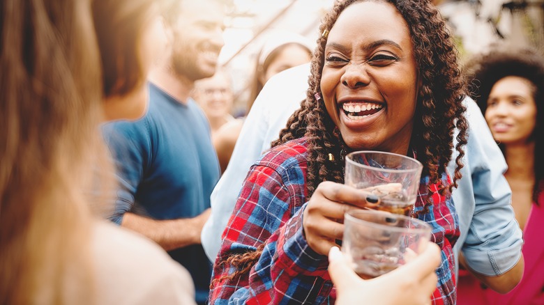 How much do you know about your BFF, BF, or GF? How much do you want to know? Sometimes not as much as this game reveals, especially after a few drinks! Never Have I Ever is also a great way to get to know a new friend better, and it's an excellent ice breaker (via Keg of Wisdom). Chances are you know the gist of the game, but here's how you play it with booze. Player one starts by making a statement about something they have never done or experienced. For example, "Never have I ever been to a Taylor Swift concert." If player two is a Swiftie and has stood in front of the hallowed stage upon which her highness sang, then player two drinks. If not, then nothing happens, except you both learn that your musical tastes are still intact (we realize this might be an unpopular opinion).