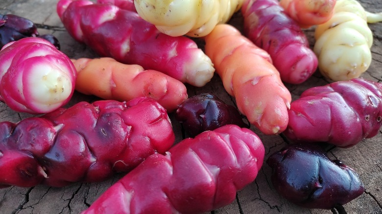 Per Fine Dining Lovers, Manuel Choqque grew up in the mountainous Andes region in Peru and is the son of potato farmers. He stuck to the family business, and has since cultivated 90 new varieties of potato since 2014. However, it's oca, a tuber of over 900 Peruvian varieties, that Choqque uses to produce his wine (via Fine Dining Lovers). It was oca's high sugar content — which, when fostered in the right condition, can produce an 11% to 12% ABV wine — that inspired him to turn it into alcohol. According to Parade, oca is sometimes referred to as "the lost crop of the Incas."