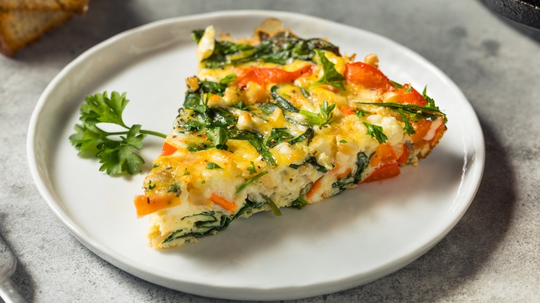For something like a frittata that starts on the stove, then transitions to the oven, preheat your cast iron pan on the stovetop. The Michigan State University Extension recommends the pop and sizzle method for preheating cast iron on the stovetop. Simply place your pan on the burner for about five minutes, rotating it periodically. Throw a few drops of water onto the pan to see if it is ready. If the water pops and sizzles, you are good to go. If it evaporates immediately, the pan is too hot. Let it cool for a minute or two before starting to cook.