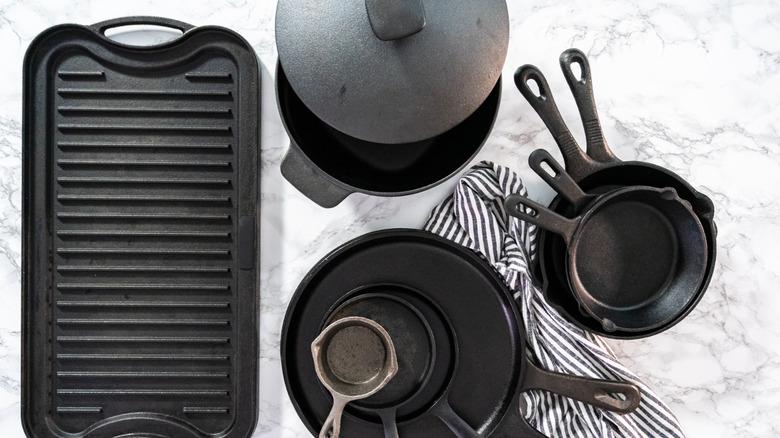 There are many benefits to baking in a cast iron pan, and one is that cast iron is economical. Brand-new cast iron pans start at $10 to $20 (via Amazon), although you can certainly spend more. But you can probably score a cast iron pan for even less at a yard sale or a thrift shop, and it should be just as good as a new dish after you scrub off any rust.