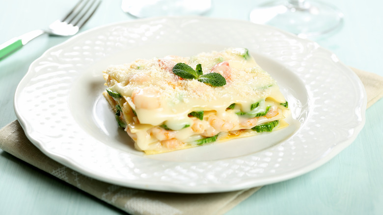 Lasagna comes in many shapes and forms. According to La Cucina Italiana, this delicious Italian main dish can be made in the traditional style, which uses Bolognese meat sauce with layers of pasta sheets or lasagna noodles and veggies, ricotta, and lots of cheese. You can also make a rolled lasagna, per the Cozy Cook, which is comprised of lasagna noodles covered with a mixture of meat and veggies and rolled up, then blanketed with sauce and baked with melty cheese. You can even find recipes for low-carb lasagna, explains The Big Man's World, which uses slices of eggplant instead of pasta! Or you can make a white lasagna, which omits the red sauce and uses a velvety smooth white sauce — called bechamel — instead.