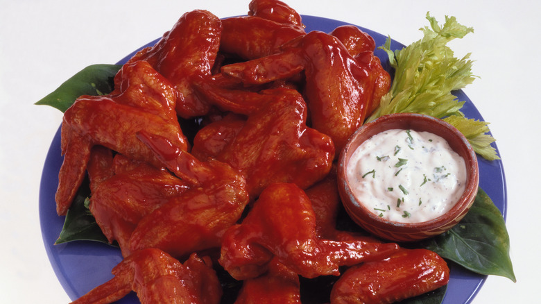 Buffaloes as animals aren't the most popular breed, so the Buffalo town decided to make up for the unpopularity by inventing chicken wings. Before the late 1900s, people weren't huge fans of chicken wings, per Insider Foods. The wings were pretty bony and had much less flesh than other parts like the thigh, so most cooks would throw them away. Those who wanted to toe the line of frugality, on the other hand, kept the wings to use as seasonings in chicken stock. One of these cooks was Teressa Bellissimo of Anchor Bar in Buffalo, New York.