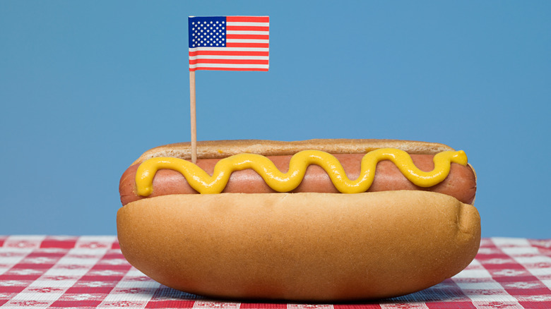 Whether it's a movie snack, a baseball game indulgence, or a proper meal, food hardly gets more American than the hot dog. According to Taste of History, ancient literature suggests that the sausages used in hot dogs were created as a way of preserving meaty leftovers with the innards of pig intestines. Soon, sausages became a Greek processed-food delicacy, then found their way to Europe. Sausages — most commonly eaten with bread — were especially popular in Germany and spread to the rest of the world.