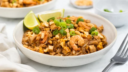 Enjoy this classic protein-packed shrimp pad Thai for lunch or dinner.