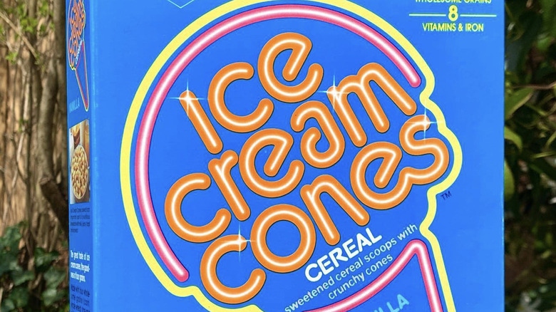 In 1987, General Mills launched Ice Cream Cones, a two-pronged sweetened cereal attack featuring pieces that tasted like ice cream and others that looked and tasted like the cones one would find at a scoop shop. Presented as "scoops," the little round balls looked like whitened Kix pieces but tasted strongly of vanilla and sugar. Those came mixed up with tiny little waffle cones that really did taste like the real thing. Some milk on top softened things out and brought out the dairy origins of those ice cream scoops as well as accentuating the fake-tasting but still preeminent vanilla kick.