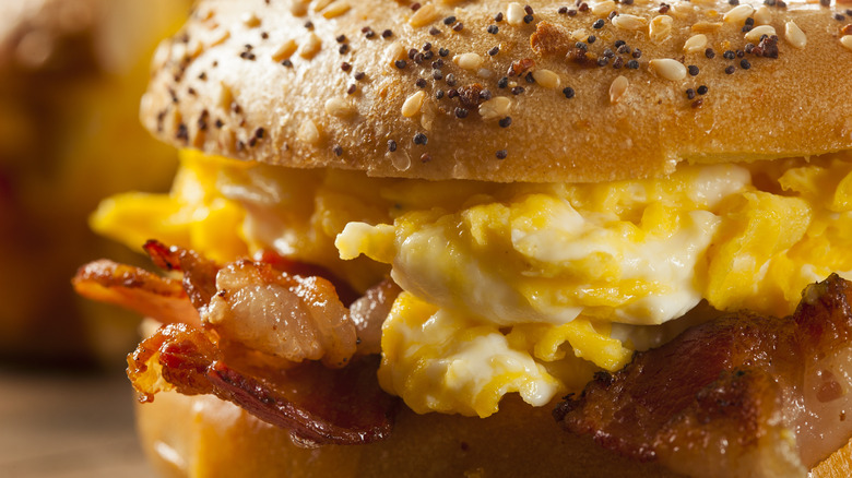 In today's busy world, hitting a drive-thru for a quick breakfast is a weekday must for many working Americans. However, not all breakfast sandwiches are created equally. Perhaps you are a bacon connoisseur and expect a certain quality from even the drive-thru, or maybe particular kinds of cheeses are a hard no when it comes to what you can eat to start your day. There are many different types of breakfast sandwiches to enjoy, but one thing is for certain — warm bread with breakfast filling is a comforting way to start your day.