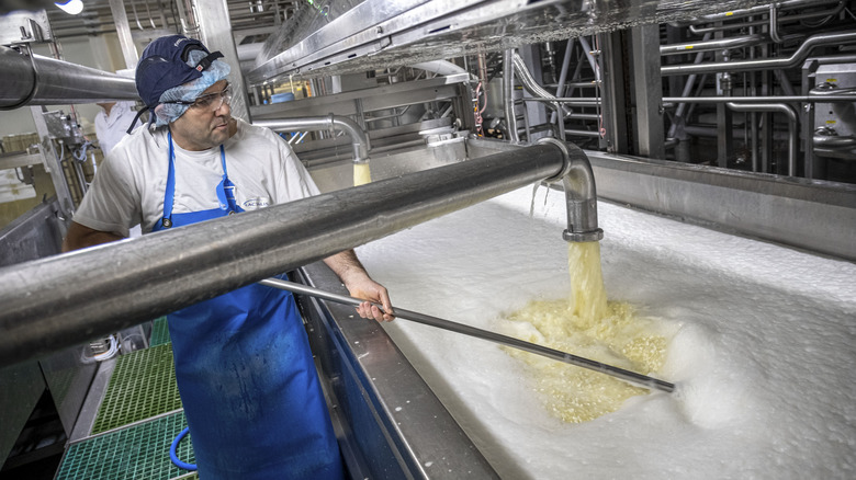 Beginning in Britain during the 17th century, the Industrial Revolution saw previously small-scale, artisanal activities become increasingly mechanized thanks to the construction of factories, regulated working hours, and new technology (via Britannica). As with all food production processes, industrialization changed the nature of cheese forever. The British drew inspiration from the United States, where specialist cheese factories were set up as early as 1851. These purpose-built factories were specially designed to house large equipment and produce vast quantities of cheese. However, it took until the mid-19th century for industrially-made cheese to become the norm in Britain, as per Enterprise and Society.