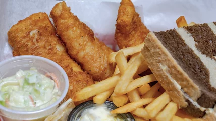 The multi-dimensional Lakefront Brewery has more to offer patrons than just well-made beer. Enjoy casual sandwiches, salads, or even a sausage flight with a cold one (or two) at the connecting beer hall. We recommend the Fish Fry Basket: You get a helping of seasoned fries with beer-battered fish and tartar sauce.
