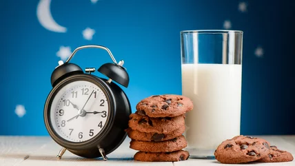 What snack you decide to grab right before you go to sleep may make you late the next day. "Any time you ingest something, you're essentially telling a part of your body that now is the time to be awake. It's kind of a wake-promoting signal," neuroscientist Dr. Andrew Varga told Today. Food consumption stimulates the body when ingested, causing a person to be awake longer than they may initially plan to be. Food is fuel the body needs all day long, just not when it should be resting. Staying up late often means a restless slumber which in turn means eating right before bed won't help to count sheep any easier.