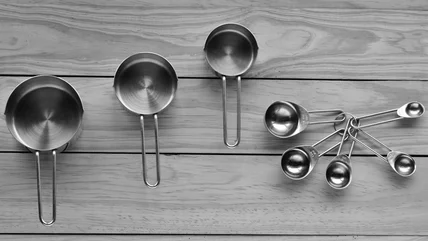 A sturdy set of metal measuring spoons and cups are a must. The New York Times has suggestions for those, but they're big proponents of using a scale for as much as possible. For those light and airy ingredients like powdered sugar, and for odd-shaped ingredients like chocolate chips and nuts. A digital kitchen scale is an inexpensive way to upgrade your home kitchen like the pros.