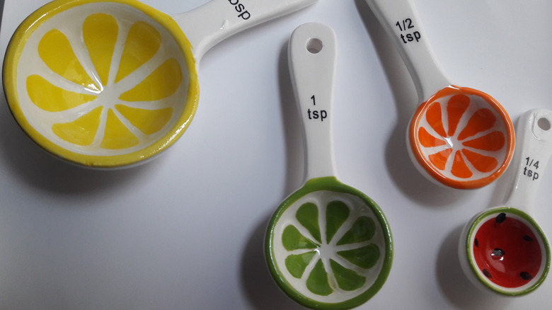 Measuring cups are meant to be accurate, not adorable. Insider notes that those cutesy cups and spoons aren't ideal for precise measuring. Whether the lip of the measuring cup isn't flat, the lines aren't calibrated, or it was always more about an artistic expression, these need to be avoided. Recipes are written in restaurants and test kitchens, which use tools that are sturdy, and easy to use on top of being accurate.