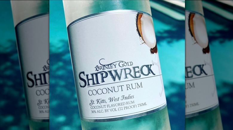 Landing in third place on this ranking of coconut rums is the one from Brinley Gold Shipwreck. This molasses-based rum is hand-crafted and naturally flavored on the island of St. Kitts, and has an ABV of 36%. In reviews, it's received scores of 90% and higher, including a 91-point rating from the Beverage Tasting Institute — the highest it's ever given for a flavored rum (via Internet Wines).