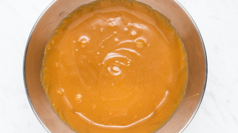 - Place all ingredients in a saucepan and stir over a low heat until the sugar has dissolved and the butter has melted.