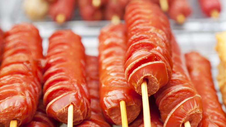 To avoid drying out the hotdogs due to juices exiting through the cuts, Insider reminds cooks to warm hot dogs first and turn them over indirect heat on a hot grill. They also recommend quality, all-beef hot dogs. You can even bake hot dogs if you don't have a grill. Lastly, Insider urges consumers not to overlook the bun — it can be toasted right on the grill or steamed for a fluffy texture. If the annual Nathan's Hot Dog Eating Contest and whopping statewide consumption statistics are any indication, hot dogs are here to stay. So teach an old dog new tricks and don't settle for mediocrity. Instead, spiral that sausage!