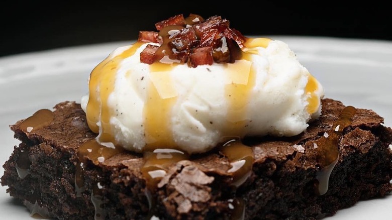 Use Spam in recipes where bacon is already required, or branch out and experiment in entirely different recipes. Spam shared an Instagram post of one fan's dessert creation; it is a hefty scoop of vanilla bean ice cream that sits on top of a fudge brownie. The finishing touch is caramelized Spam bits with a sauce drizzled across the whole dessert (talk about elegance). So, no matter whether you're bold enough to try crispy Spam with ice cream or mix some of the meat into molasses cookies, Spam is the spotlight ingredient you can't ignore.
