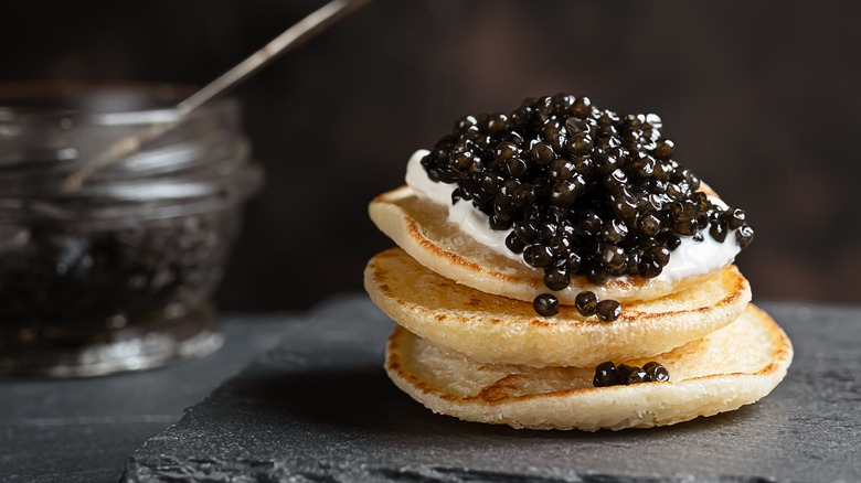 While sour cream is used in many humble recipes, it can also appear in one of the most expensive bites of food you'll ever eat. Caviar, the decadent roe of the sturgeon fish, is definitely not cheap and very much special-occasion fare. While caviar can be eaten alone, if you're looking for a partner for this delicacy, look no further than sour cream. Its tang and gentle sweetness are the perfect pairings with the briny oceanic flavor present in caviar. While sour cream is a trusty supporting player, only a dollop is necessary so that the caviar is the star.