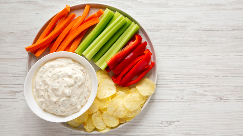 Onion dip is of course a perennial favorite, and we would recommend an extra-indulgent version that calls for caramelizing the onions. The dip is then spiked with brown sugar, cream cheese, mayonnaise, soy sauce, and Worcestershire sauce. You can pair the dip with potato chips or opt for fresh veggies for a greener kick to the snack.