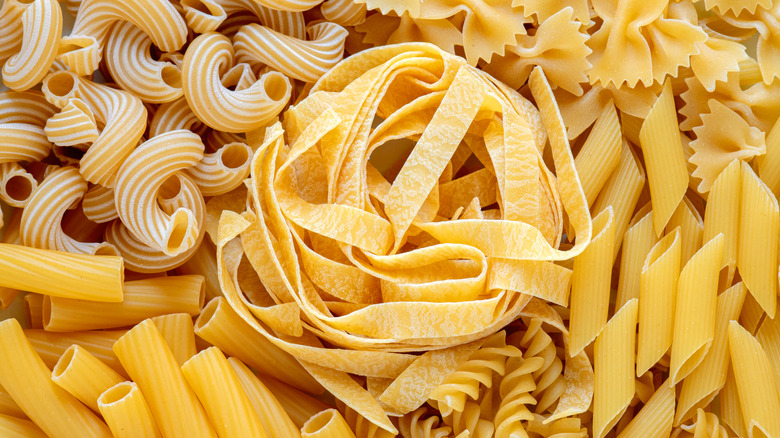 Another factor to consider is the type of pasta. Most pasta is made from wheat flour and water, but there are also varieties made from other grains like corn, rice, or quinoa. These alternative kinds of pasta may be a good choice for people with dietary restrictions or who are looking for a healthier option. Additionally, there are fresh pasta options, which are made from eggs and flour and tend to have a softer, more delicate texture than dried pasta. These are best used in dishes where the pasta is the star of the show, rather than being drowned in sauce. Of course, Chef Bastianich has her favorite type, which she shared with Wisconsin Public Radio: "Make sure that it's made from 100% semolina flour ... because it has more proteins, more gluten in it."