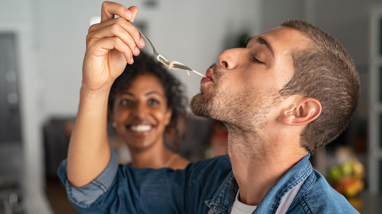 Pasta is a staple in many households, but it can be tricky to get it just right. Undercooked pasta can be hard and chewy, while overcooked pasta can become mushy and gummy. So, how can you tell when your pasta is perfectly cooked? "There's an old saying in Italy, 'If you throw the pasta to the wall, and it sticks, it's done,'" Chef Bastianich advises, via WPR. However, if you want to know whether your pasta is al dente without throwing it around your kitchen, there are a few other tricks to try.