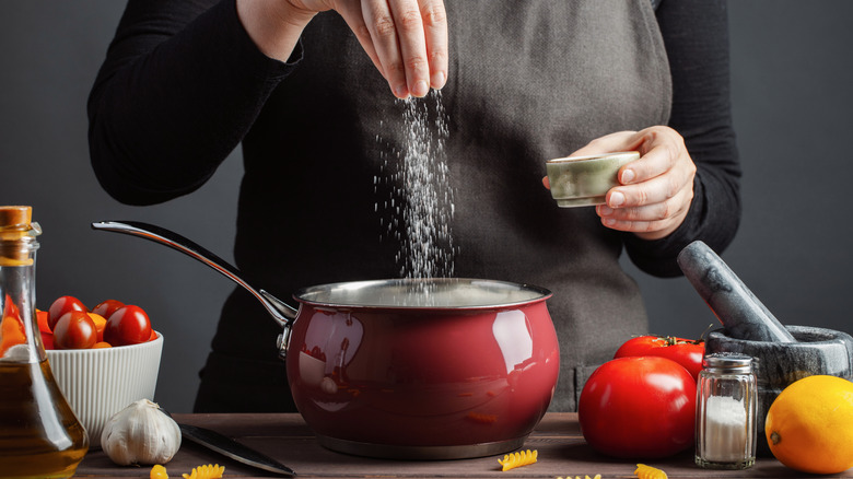 When you salt the water also matters, advises America's Test Kitchen. It's best to add salt to the water before you add the pasta. This allows the salt to dissolve and evenly distribute throughout the water, seasoning the pasta as it cooks. If you add the salt after the pasta is already cooking, it can be difficult to evenly distribute and may result in uneven seasoning.