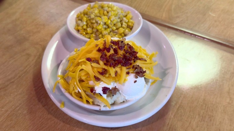 Knowing I had to try the top items on the Roadhouse menu, I knew I was adding loaded mash into my order. After one bite, I was pretty disappointed. They weren't as good as I remembered. There was no real flavor in the potatoes, and the toppings I was hoping would save the day were lackluster. I did love the combo of shredded cheese, sour cream, and bacon bits, but there was nothing special about this side at all.