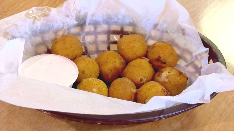 Another surprising find and a top 3 contender was the Texas Roadhouse's Rattlesnake Bites appetizer. These lightly fried balls featured diced jalapeño and Monterey Jack cheese with a side of that epic Cajun sauce. I didn't know how much I'd come to love this dish. It's another one I wasn't expecting to enjoy, and this is exactly why these taste tests are so cool!