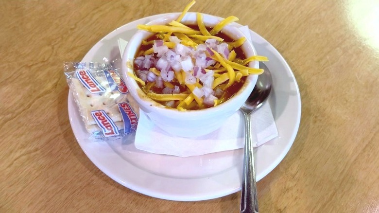 This little cup of heaven featured the chain's scratch-made chili with a generous helping of beans, onions, and Cheddar cheese on top. The flavor profile was rich with a good amount of spice, but not so much I had to stop eating. The heat dies down after each bite, so you can actually enjoy the flavors. Paprika, salt, chili powder, cayenne — all these flavors were present.