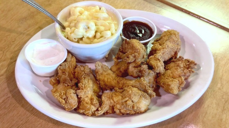 The critters were really delicious. The seasoned breading was crispy with a balanced spice flavor within each bite. The chicken itself was juicy white meat that was a perfect complement to the seasoned exterior. I also loved that there were an array of dipping sauces to choose from. My table went with BBQ and ranch (and there's also that killer mac and cheese I was talking about).