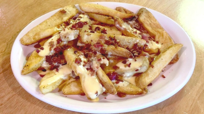 Regarding the regular steak fries, they were good, but they were pretty heavy on the spices and salt. When they were covered in cheese and bacon, it was the Goldilocks flavor profile we were anticipating. The warm, melted cheese was the perfect addition to cut the salty exterior of the fries, and who is saying no to the addition of bacon? Not me.