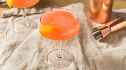 First, add a dash of absinthe (or Benedictine liqueur) to a chilled cocktail glass. Second, mix up dry gin, grenadine, ice, and orange juice in a shaker. Third, strain that mixture into the absinthe glass. Fourth and finally, garnish with something citrusy like a twisted orange peel. The resulting concoction will taste like licorice and, per Cocktail Society, will feature a brightly warm, pinkish hue. Modern sensibilities tend towards sour recipes (think of the Cosmopolitan or a Penicillin cocktail, per Washington Post), however, so be aware, this is a rather sweet combination.